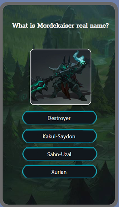 I've been passionate about the Runeterra lore since 2014, I learned everything about it but I never could “test” my knowledge, so I searched for trivia games only to find out there is only outdated lore with basic questions, so I decided to create my own trivia game. This is how Lore Masters got born.